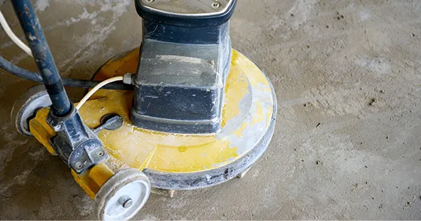 We clean, grind, and repair the existing floor to ensure optimal epoxy adhesion.